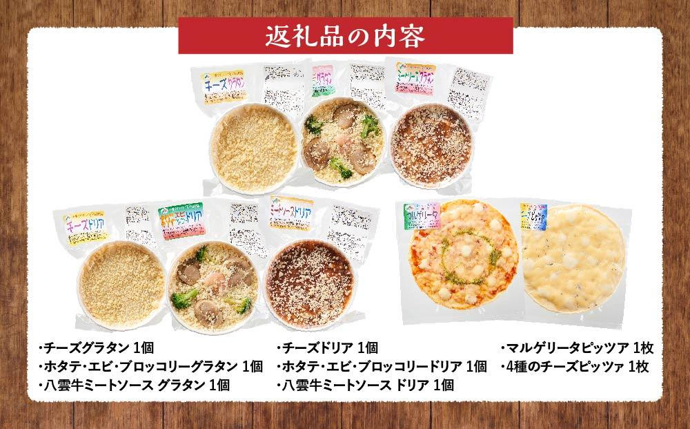 八雲町の生乳を使用したお家でお手軽イタリアン!添加物・化学調味料不使用で安心! お手軽イタリアン8点セット[グラタン3種(チーズ、ホタテ・エビ・ブロッコリー、八雲牛ミートソース)、ドリア3種(チーズ、ホタテ・エビ・ブロッコリー、八雲牛ミートソース)、ピッツァ2種(マルゲリータ、4種のチーズ)]【 レンジ 温めるだけ 冷凍 冷凍食品 調理済み お手軽 簡単 調理 簡単調理 食卓 ランキング 冷凍食品 おうちごはん 八雲町 北海道 】