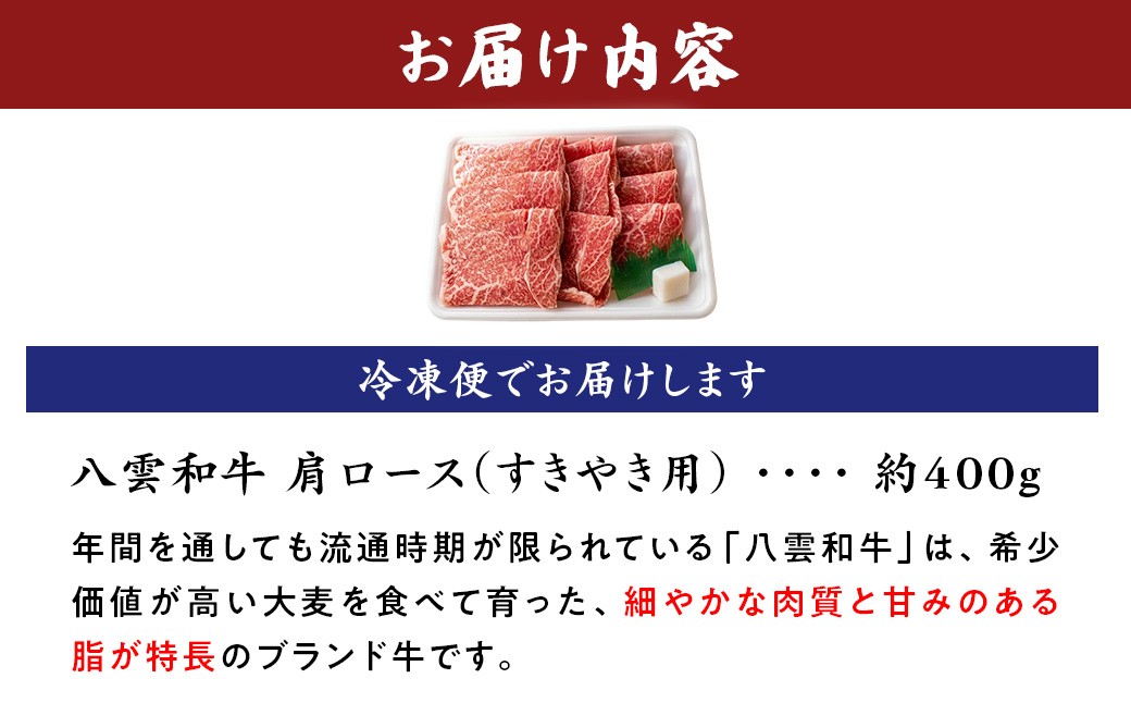 | 容量 | 八雲和牛 肩ロース(すきやき用)約400g |