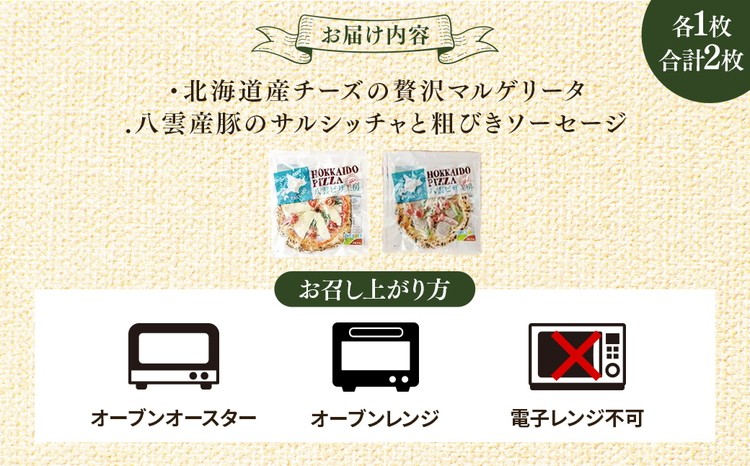 ハーベスター八雲 八雲ピザ工房のピザ2セットB【北海道産チーズの贅沢マルゲリータ/八雲産豚のサルシッチャと粗びきソーセージのピザ】【 ピザ ピザセット マルゲリータ ソーセージピザ 洋食 イタリアン 食品 北海道ピザ HOKKAIDO PIZZA 八雲町 北海道 】