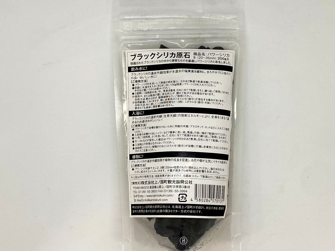 遠赤外線・マイナスイオンを高レベルで放出し、温浴効果・癒し効果等、様々な効果があると言われています。パワーシリカとは、上ノ国町で採掘されたブラックシリカの中から硬質なものを厳選し、パワーシリカと命名しました。