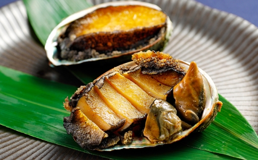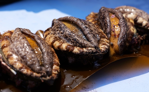 奥尻産蝦夷あわびを活きたままお醤油で煮上げました。