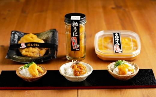 奥尻産うにを3種類の食べ方で堪能できる人気のセットです。