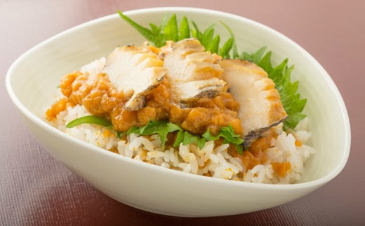 粒うにと蒸しあわび、ふたつの海の幸を堪能できます。