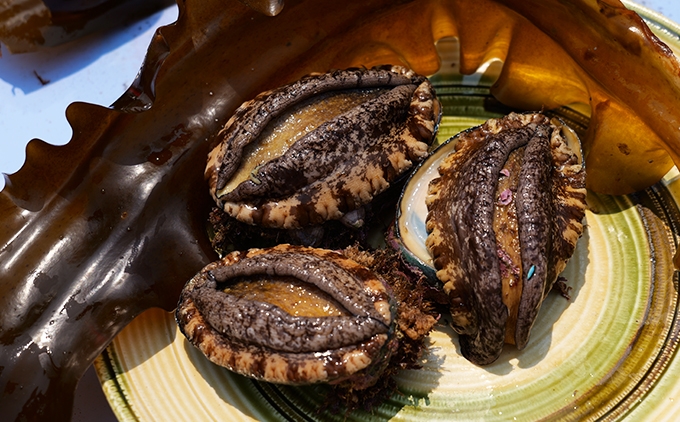 日本海の荒波にもまれ育った昆布を食べ、奥尻海峡で成長した「蝦夷アワビ」。