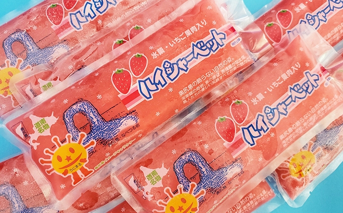 地元で50年近く愛され続けている、イチゴ味のシャーベットです。 元祖 奥尻スイーツ「ハイシャーベット」イチゴ味 選べる本数 12本入り・24本入り アイス スーツ | 北海道 奥尻町 送料無料