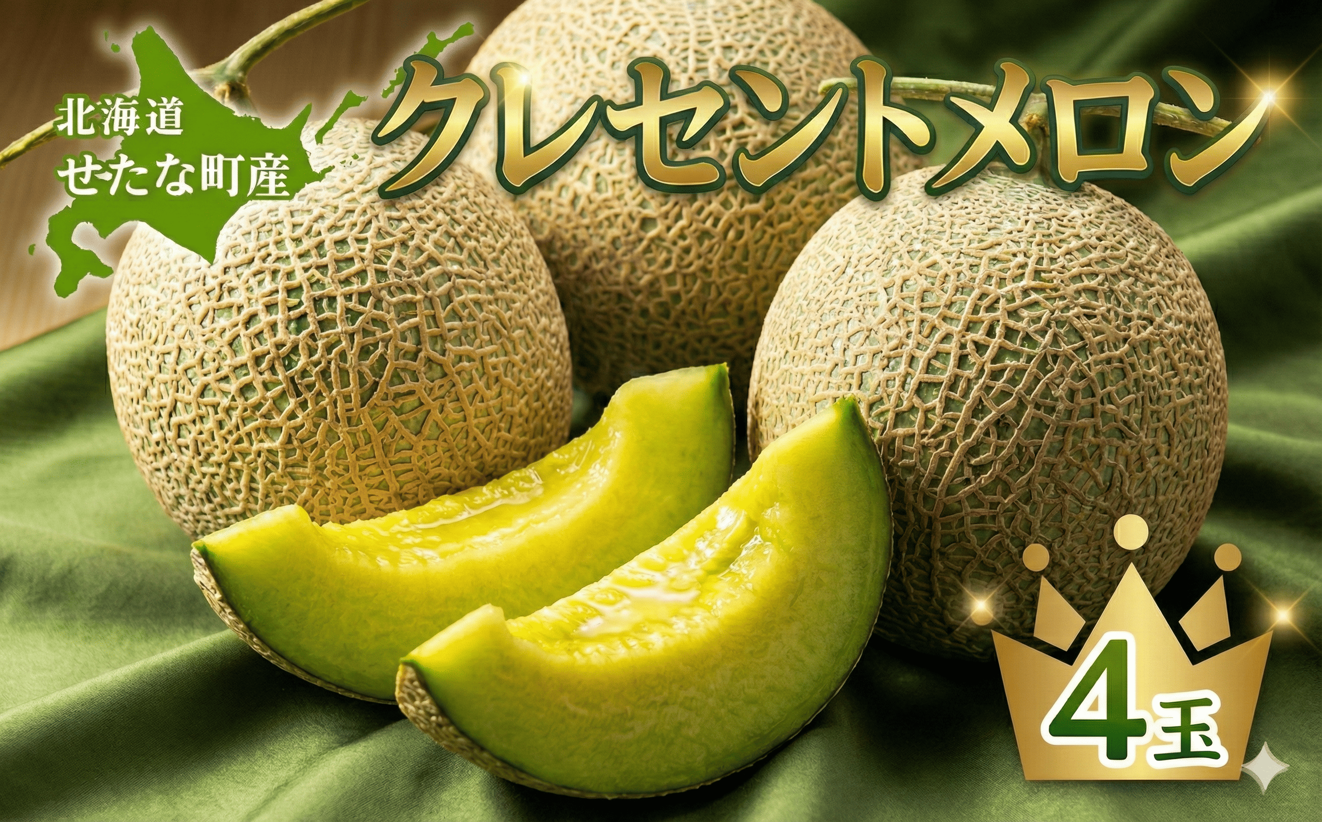 チョイス公式ポイント交換対象 北の大地・北海道の短い夏に力強く育つ極旨メロン。「クレセントメロン」 【2026年8月上旬から順次発送】【北海道産極旨メロン】クレセントメロン 4玉 メロン 旬 野菜 青肉 ジュース 産地直送 せたな町 ふるさと納税