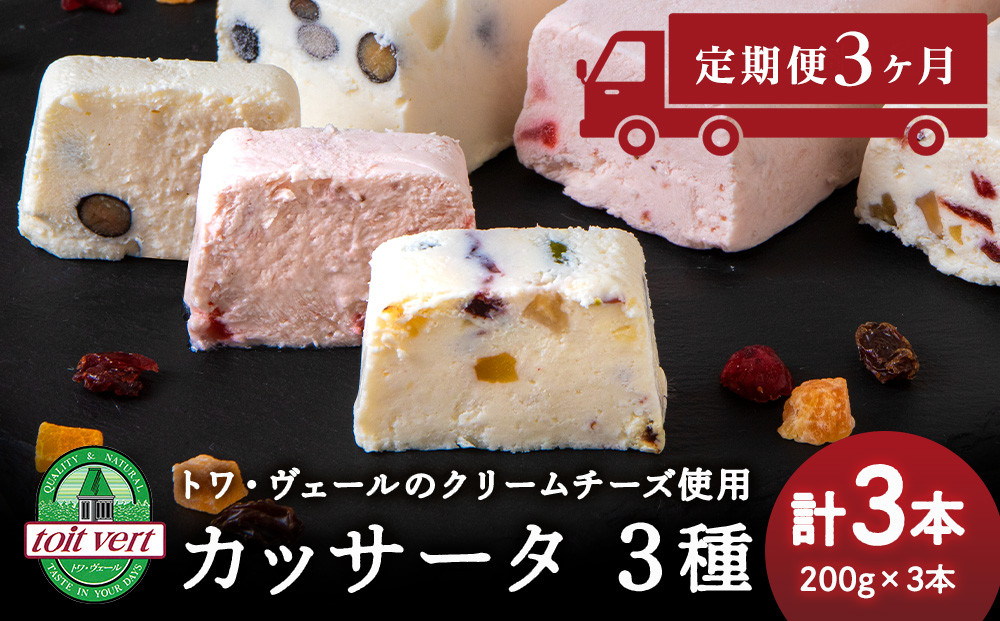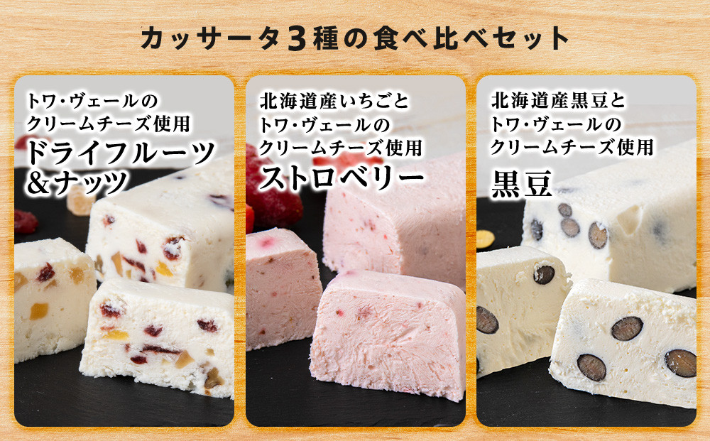 【定期便3ヵ月】 アイスケーキ ( カッサータ )3種〈 ドライフルーツ . いちご . 黒豆 〉 合計3個セット トワ・ヴェール 工場直送 食べ比べ アイス ケーキ 菓子 洋菓子 チーズケーキ デザート ギフト クリームチーズ トワヴェ―ル 黒松内 北海道