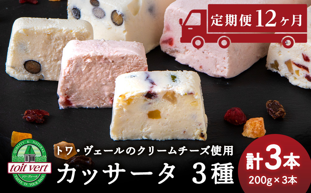 【定期便12ヵ月】 アイスケーキ ( カッサータ ) 3種 合計 3個セット トワ・ヴェール 工場直送 食べ比べ アイス ケーキ 菓子 洋菓子 チーズケーキ デザート ギフト クリームチーズ ドライフルーツ トワヴェ―ル 黒松内 北海道
