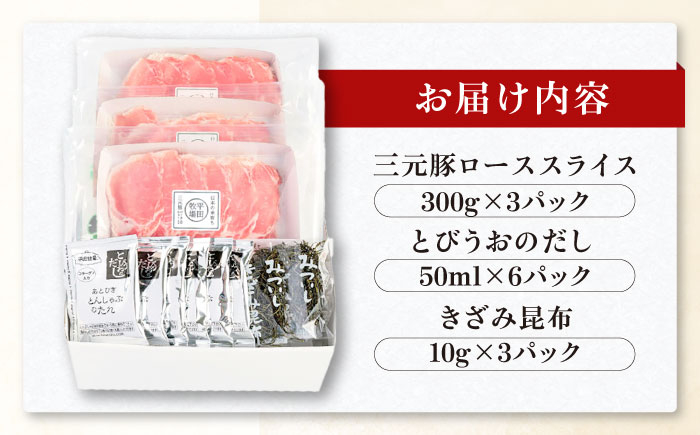 | 容量 | 【お届け内容】 ・平田牧場 三元豚 ロース スライス 900g (300g×3P) ・とびうおのだし 50ml×6P ・きざみ昆布 10g×3P 【原材料名】 豚肉・昆布 しょうゆ、発酵調味料、砂糖、とび魚、かつお合わせだし、酵母エキス、ポークコラーゲンペプチド、しいたけエキス、(原料の一部に小麦、大豆、さば、豚肉、ゼラチンを含む) 【加工地】 北海道札幌市 |