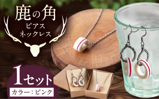 北の職人技 鹿の角 ネックレス&ピアスセット(ピンク) 《喜茂…