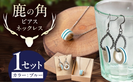 北の職人技 鹿の角 ネックレス&ピアスセット(ブルー) 《喜茂…