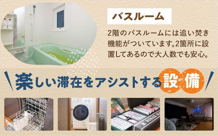 | 容量 | ・チェックイン:15:00〜22:00/チェックアウト:11:00 ※チェックアウトの際は、鍵をオーナーへ直接ご返却ください。 ・室内は全室禁煙です。 ・12月〜3月:予約不可 ・1枚あたり12名様までご利用可能です。(事前に宿泊される方のお名前等の確認をさせていただきます。) ・海外からお越しの方は、ご宿泊の際にパスポートの写しが必要です。 ※必ずお読みください※ ーご予約方法ー (1)寄附お申込み前にメールで事前予約をお願いいたします。 (2)寄附お申込み (3)チケット送付 (4)予約日前日までに専用フォームにてご予約者様の必要事項を確認させていただきます。(別途ご連絡いたします。) (5)ご予約日当日、チケットを現地にてお渡しください。 ※チケットをお忘れの場合、宿泊費用全額実費にて頂戴いたしますのでお忘れないようお願いいたします。 【設備】 全室暖房完備・無料Wi-Fi セミダブルベッド2台(2部屋)・2段ベッド(2部屋)・布団4セット 100インチプロジェクター・PS5・VR・Blu-rayプレーヤー・テレビ yogibo・麻雀セット 大型冷蔵庫・オーブン・電子レンジ・炊飯器・食洗器 ケトル・食器・カトラリー一式・バスルーム 乾燥機付き洗濯機・浴室・洗面所・トイレ シャンプー・リンス・ボディーソープ ドライヤー・ヘアアイロン・タオル アイロン・ゴミ箱・ハンガー・加湿器 HDMIケーブル・スチームバキューム ※注意事項※ ・ご予約日当日、チケットを現地にてお渡しください。 ※チケットをお忘れの場合、宿泊費用全額実費にて頂戴いたしますのでお忘れないようお願いいたします。 ・チェックアウトの際は、鍵をオーナーへ直接ご返却ください。 |