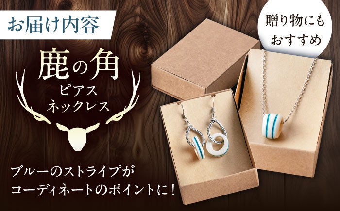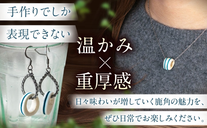 鹿 鹿角 アクセサリー ネックレス ピアス 手作り ハンドメイド 工芸 工芸品 北の職人技 鹿の角 ネックレス&ピアスセット(ブルー) 《喜茂別町》【EBIJIN】 鹿 鹿角 アクセサリー ネックレス ファッション ペンダント ピアス 手作り ハンドメイド 工芸 工芸品 [AJAO121]