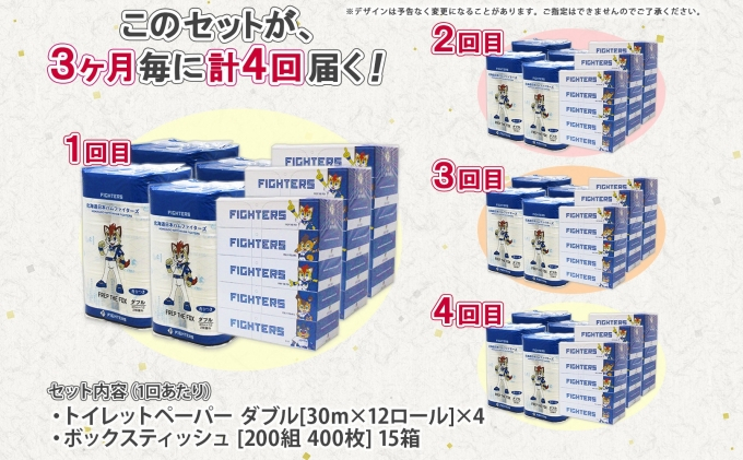 定期便 3カ月毎全4回 北海道産 日本ハムファイターズ トイレットペーパー 30m 48ロール ボックスティッシュ 200組 15箱 セット まとめ買い 生活必需品 備蓄 リサイクル 送料無料 ファイターズ グッズ 日ハム