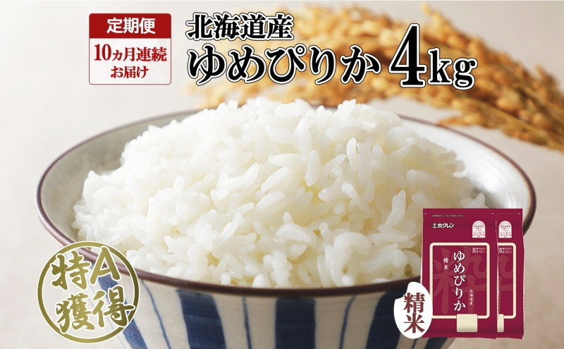定期便 10ヵ月連続10回 北海道産 ゆめぴりか 精米 4kg 米 特A 獲得 白米 ごはん 道産 4キロ 2kg ×2袋 小分け お米 ご飯 米 北海道米 ようてい農業協同組合 ホクレン 送料無料 北海道 倶知安町