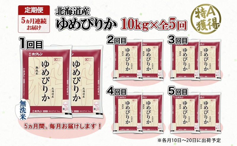 北海道の特A米『ゆめぴりか』無洗米 10kg(5kg×2袋)×全5回をお届けします。