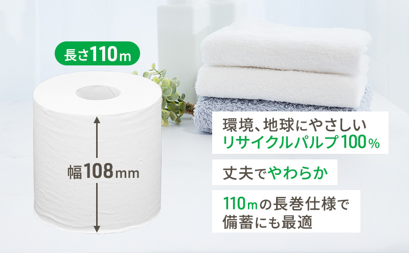 110mの長巻仕様で、一般的なトイレットペーパーに比べてかなり長いため交換回数の手間が少なく、もしもの時の備蓄にも最適です。