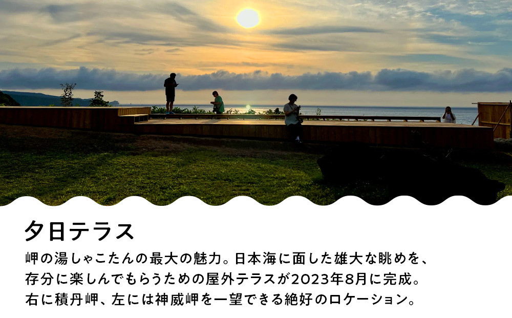 たくさんの地元客・観光客に愛されてきた「岬の湯しゃこたん」は2022年に復活し、新たな企画やリニューアルを進めています。2023年の8月には崖っぷち夕日テラスが完成し、2024年5月5日に一棟貸しの宿 フロリダ をグランドオープンしました。また2025年よりエストニア産バレルサウナも導入されました。