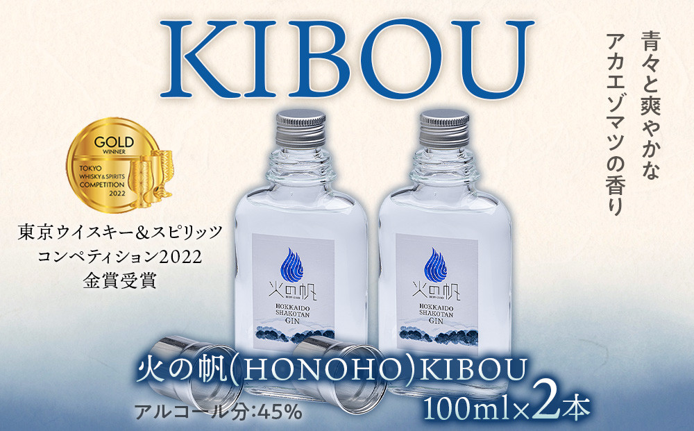 ジン 北海道 積丹 酒 蒸溜酒 アルコール 火の帆 KIBOU GIN 100ml 2本