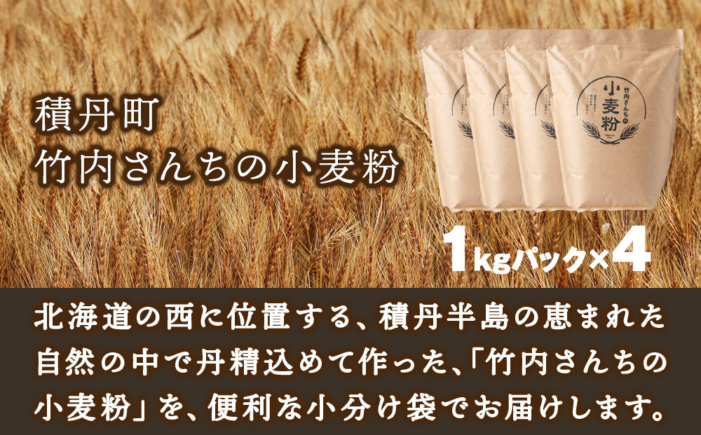 竹内さんちの小麦粉【北海道 ゆめちから(1kg×4袋)便利な小分け袋でお届け】4㎏ 小分け お菓子 パン