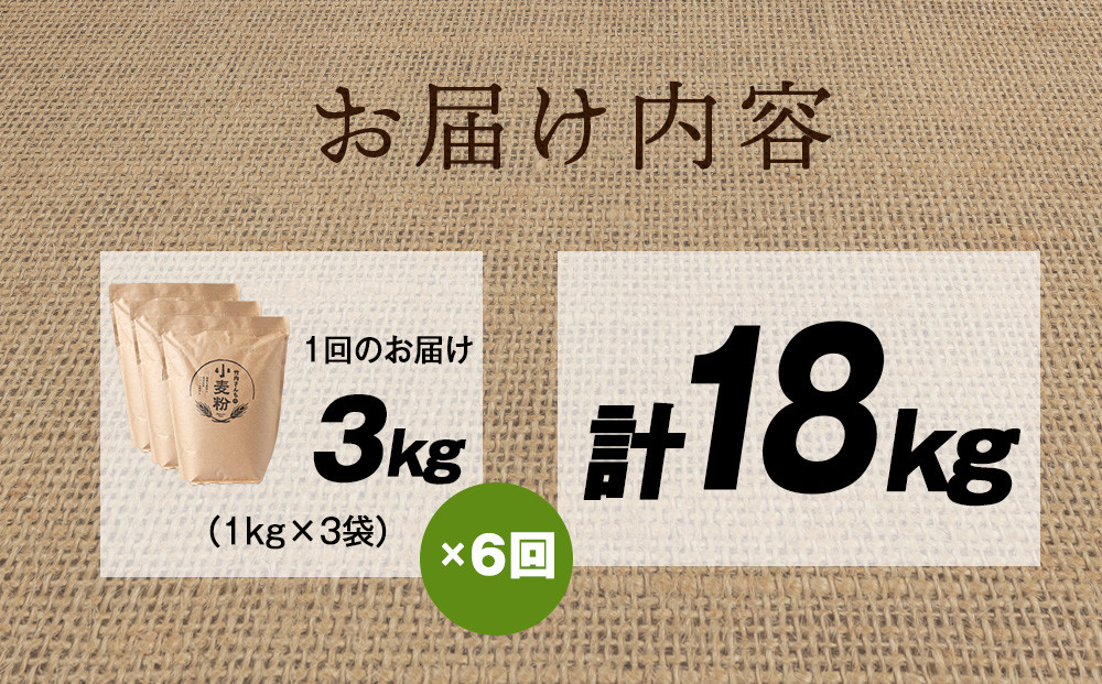 毎月届く定期便!「1kg×3袋」の小麦粉を計6回お届け!