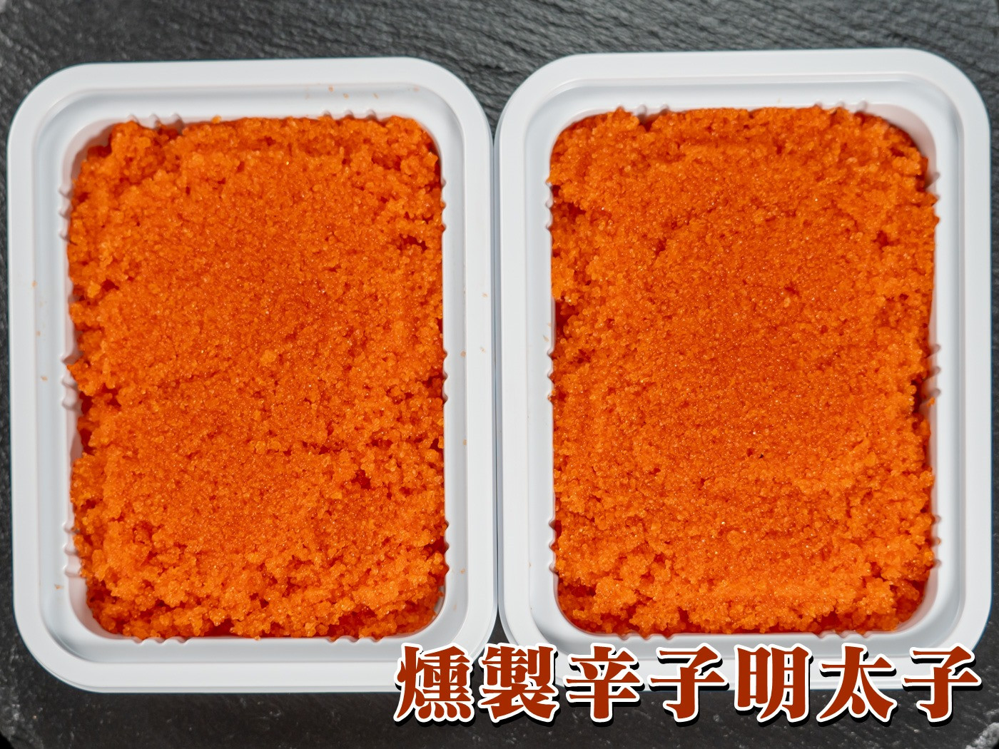 ※焼き辛子明太子状態の燻製や、乾燥しカラスミのように干せた燻製ではありません。