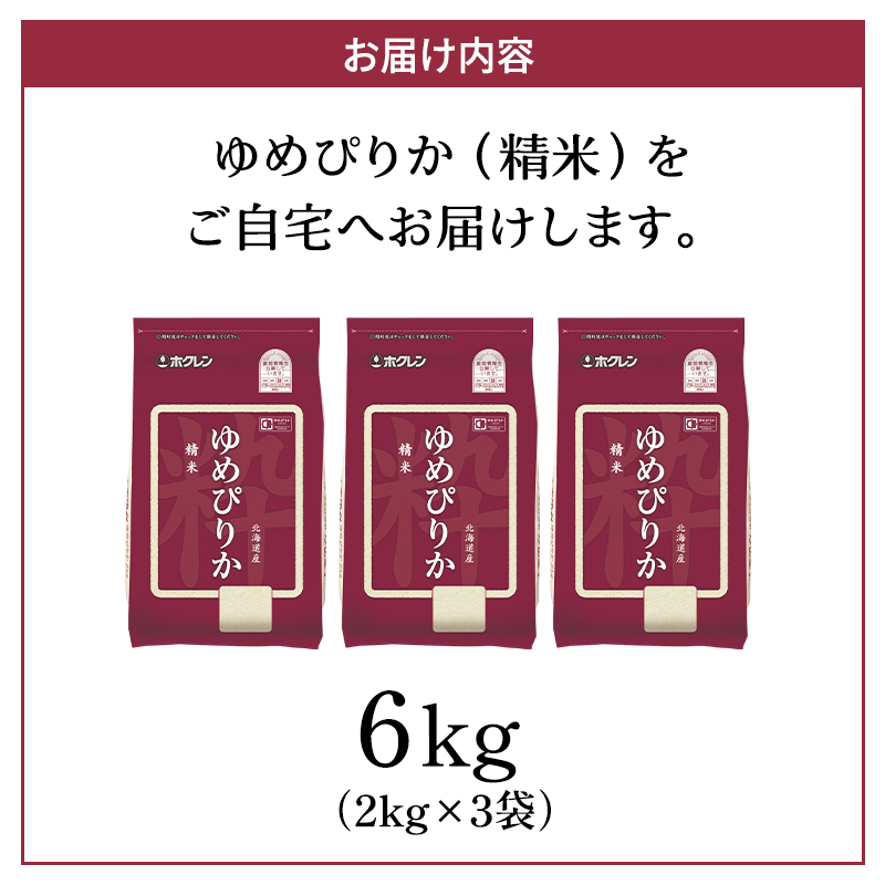 ホクレンゆめぴりか(精米6kg(2kg×3袋))※チャック付袋 お米 米 ごはん 精米 白米 国産 北海道 こめ コメ [JA新おたる]