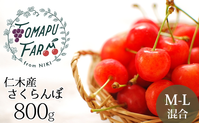 | 容量 | サクランボ800g(200g×4パック) M-Lサイズ混合 ※品種は、「佐藤錦」「南陽」のいずれかが入ります。 産地:仁木町 ※ふるさと納税返礼品地場産品基準(平成31年総務省告示第179号第5条)のうち該当する類型について 仁木町内において生産されたものであることから第1号に該当。 |