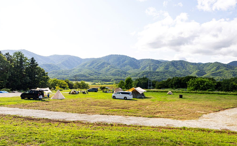 フリーサイトBは車ごとサイトに乗り入れることが可能です。開放感があり、美しい山々と美しい星空を同時にお楽しみいただけます。