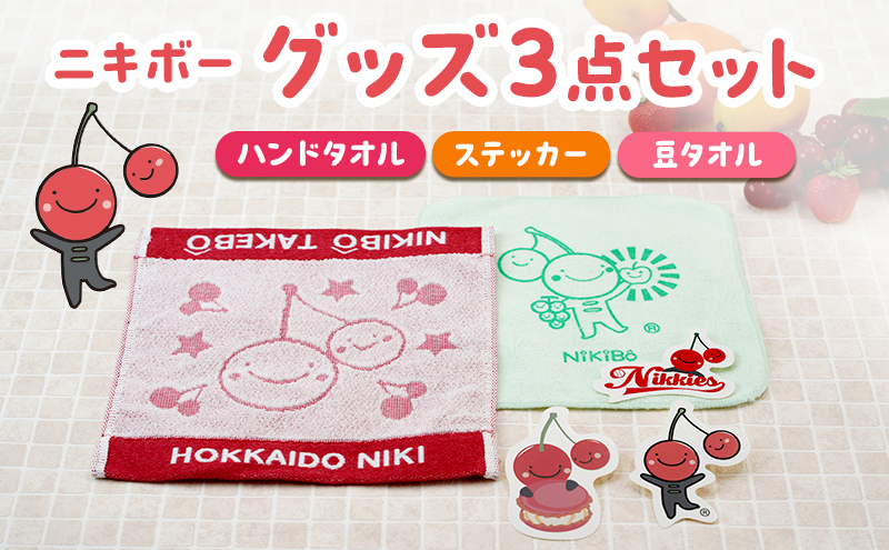 【ニキボー】グッズ3点セット(ハンドタオル・ステッカー・豆タオル)【 仁木町 ご当地 ゆるキャラ タオル 雑貨 小物 日用品 】[仁木町観光協会]