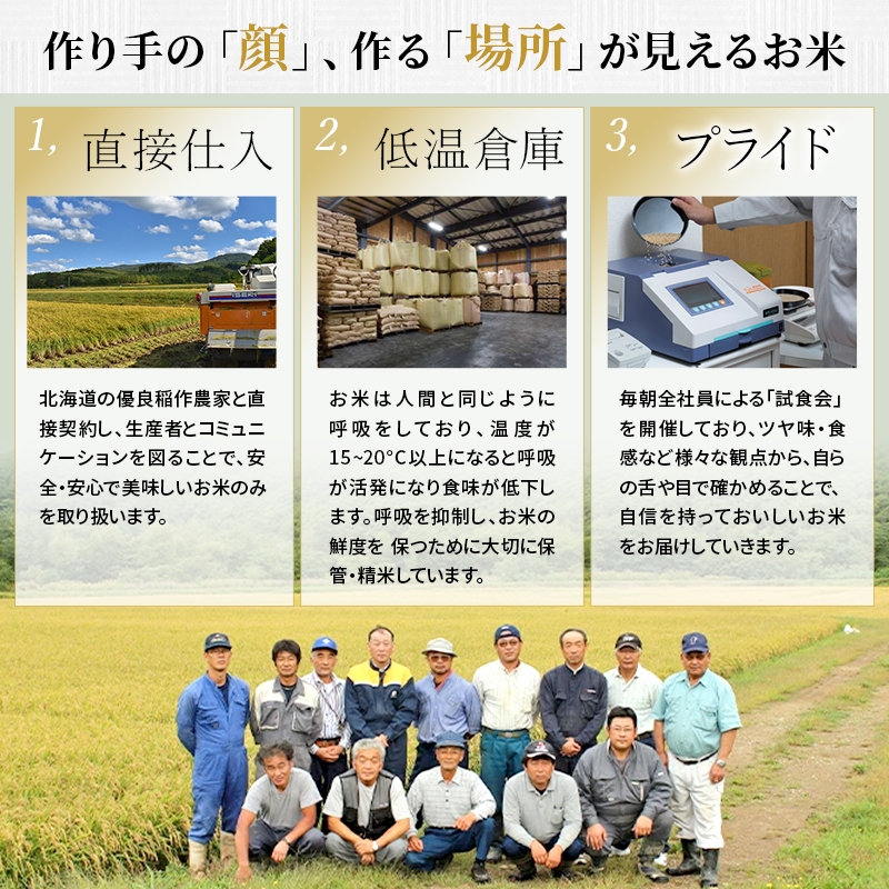 松原米穀ではお米の卸売・小売を生業とする中で、「生産者の幸せ」「消費者の幸せ」に寄与することを使命として事業を行ってきました。北海道の農家と信頼関係を築き、直接仕入れた「顔が見える」お米のみを厳選。低温倉庫で鮮度を守りつつ、「五つ星お米マイスター」の知見と毎朝の全社員試食で味を徹底的に確認しています。プロの舌で納得した本物のおいしさを、新鮮なまま全国のご家庭へお届けします。