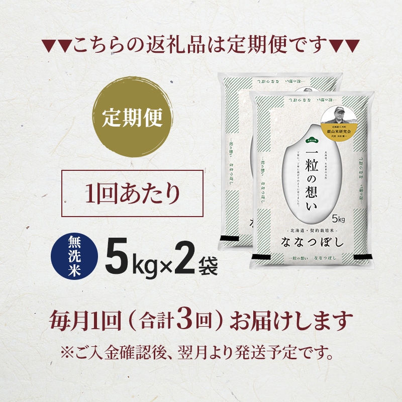 【 2026年産米 新米 予約 】3ヵ月連続お届け 銀山米研究会の無洗米<ななつぼし>10kg(5kg×2袋) ご飯 白米 ライス ブランド米 おにぎり お弁当 北海道産 産地直送 時短 ごはん [株式会社 松原米穀]