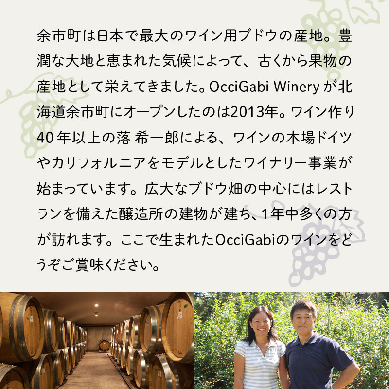 「日本一のワインぶどうの産地に、美しいワイナリーを作りたい」という思いで誕生した株式会社OcciGabi winery。人生をかけたワインを是非ご賞味ください。