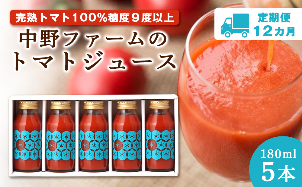【定期便6回】中野ファームのトマトジュース 180ml×5本セット …60,000 円 美容・健康を気遣う方におすすめです。 - 常温便