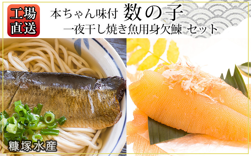 工場直送!『一夜干し焼き魚用身欠鰊』『本ちゃん味付数の子』セット〈糠塚水産〉
