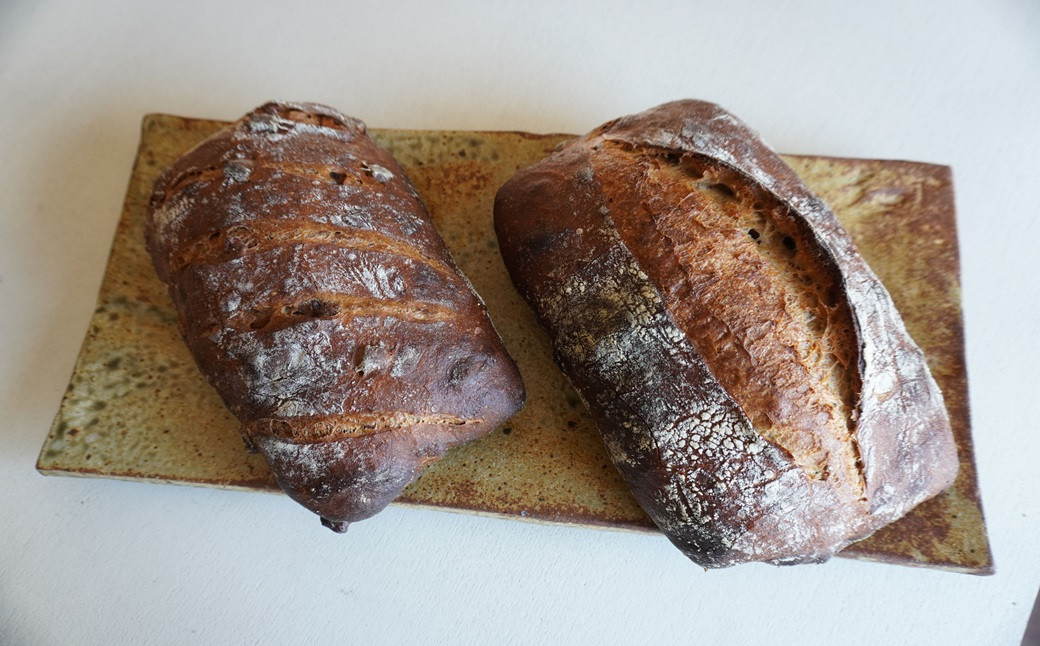 ワイン用ブドウの酵母から起こした酵母を使用したカンパーニュ・クルミカンパーニュ。