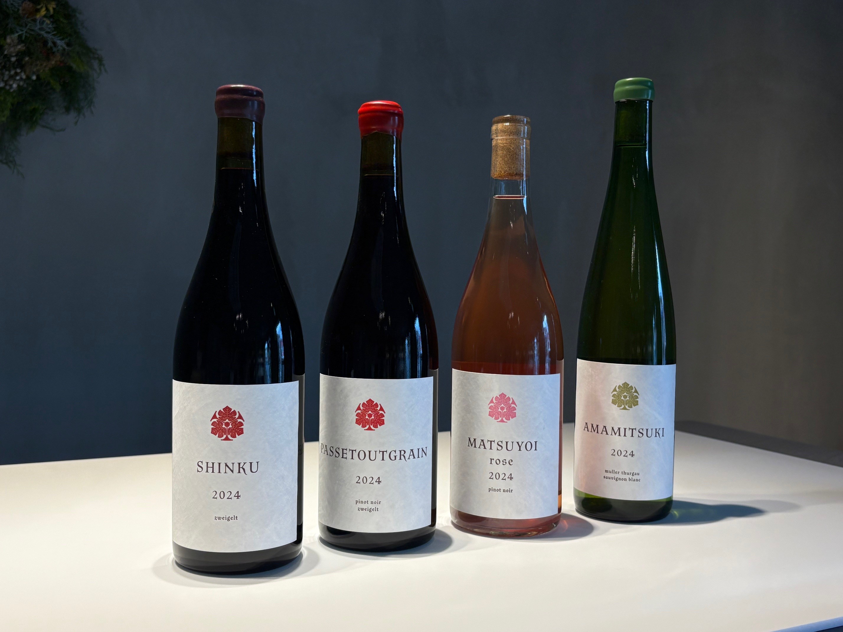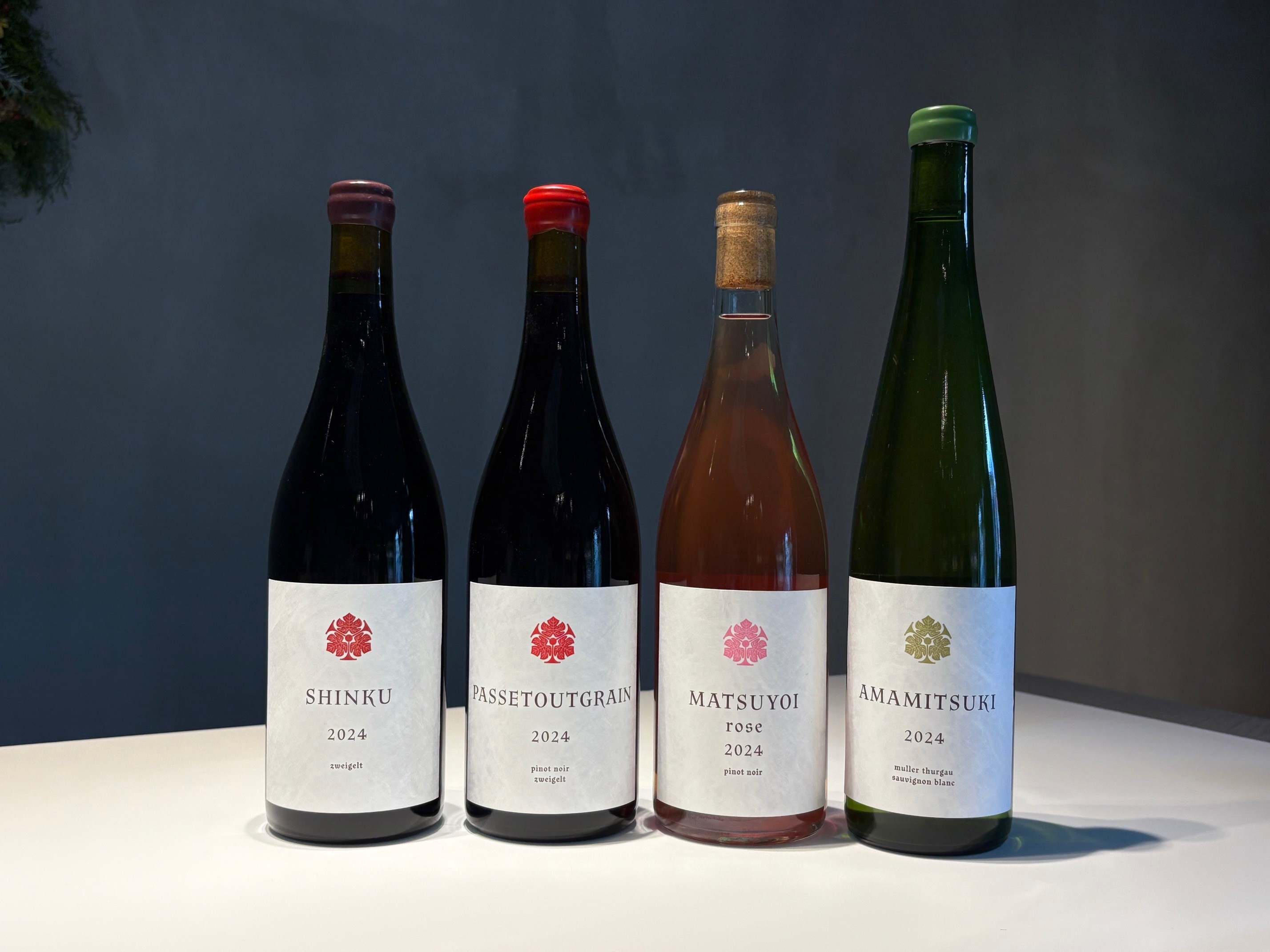 | 容量 | ①「AMAMITSUKI 2024」白/750ml 4本 ②「SHINKU 2024」赤/750ml 3本 ③「PASSETOUTGRAIN 2024」赤/750ml 3本 ④「MATSUYOI rose 2024」ロゼ/750ml 2本 |