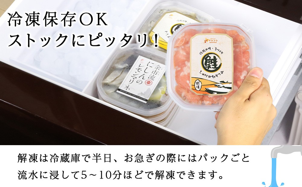 王道の「にしん」と、脂の乗った「鮭」。どちらも主役級の2種類を、各3パックずつ贅沢なセットにしました。