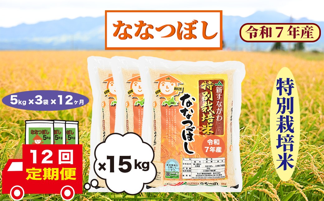 【毎月お米が届く】R7年産特別栽培米 毎月1回15㎏ 12回お届け 合計180㎏ 【定期便12回】北海道奈井江町 特別栽培米 ななつぼし 15kg