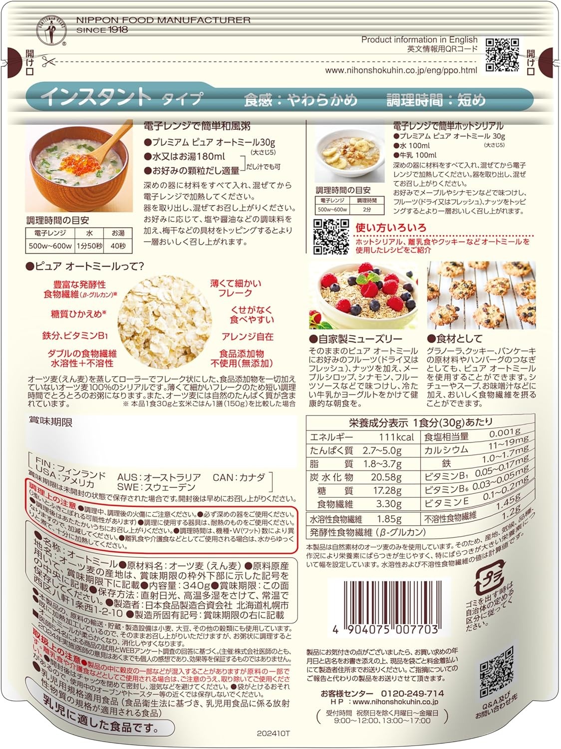 北海道由仁町 日本食品製造合資会社 A02 プレミアムピュア オートミール「インスタントタイプ」340g×12袋