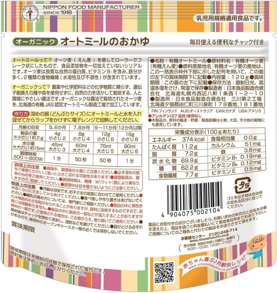 | 容量 | 日食オーガニックオートミールのおかゆ(120g)×12袋 |