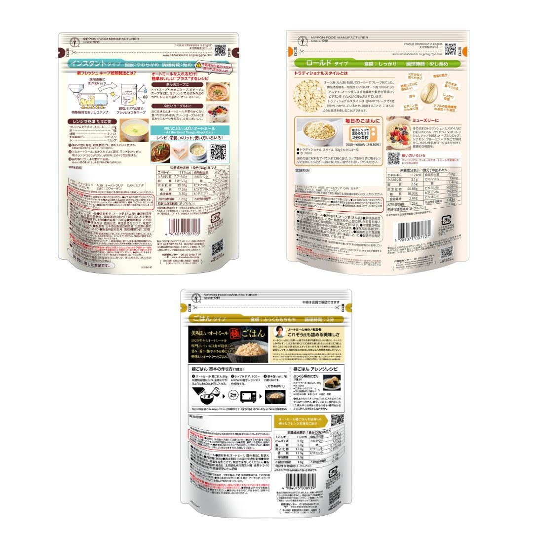 インスタントタイプ、ごはんタイプ、ロールドタイプの食べ比べセット
