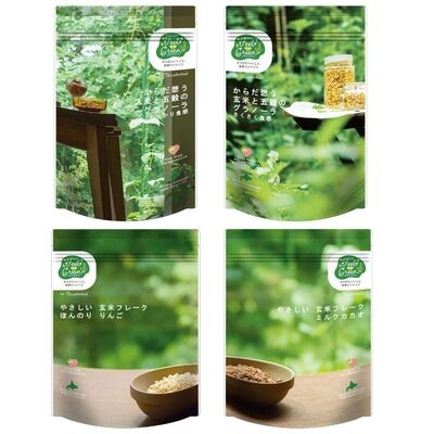 玄米や大麦、五穀など、からだにうれしい穀物を使い、やさしい味わいに仕上げた日食「Feel&Green」シリーズのシリアル4種を詰め合わせました。