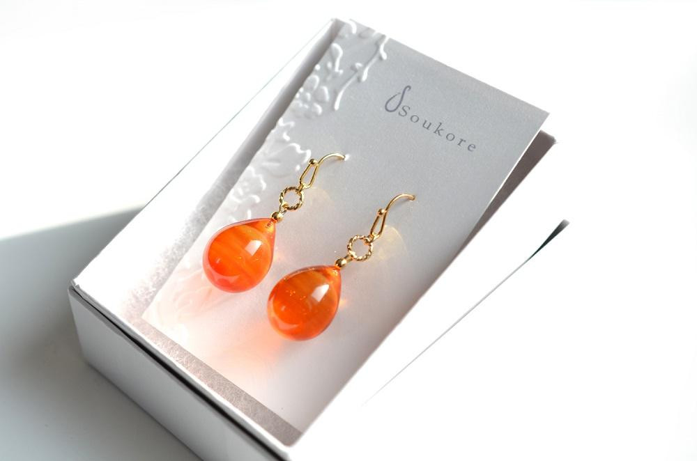 【Soukore】ガラスアクセサリー・夕やけカラーピアス