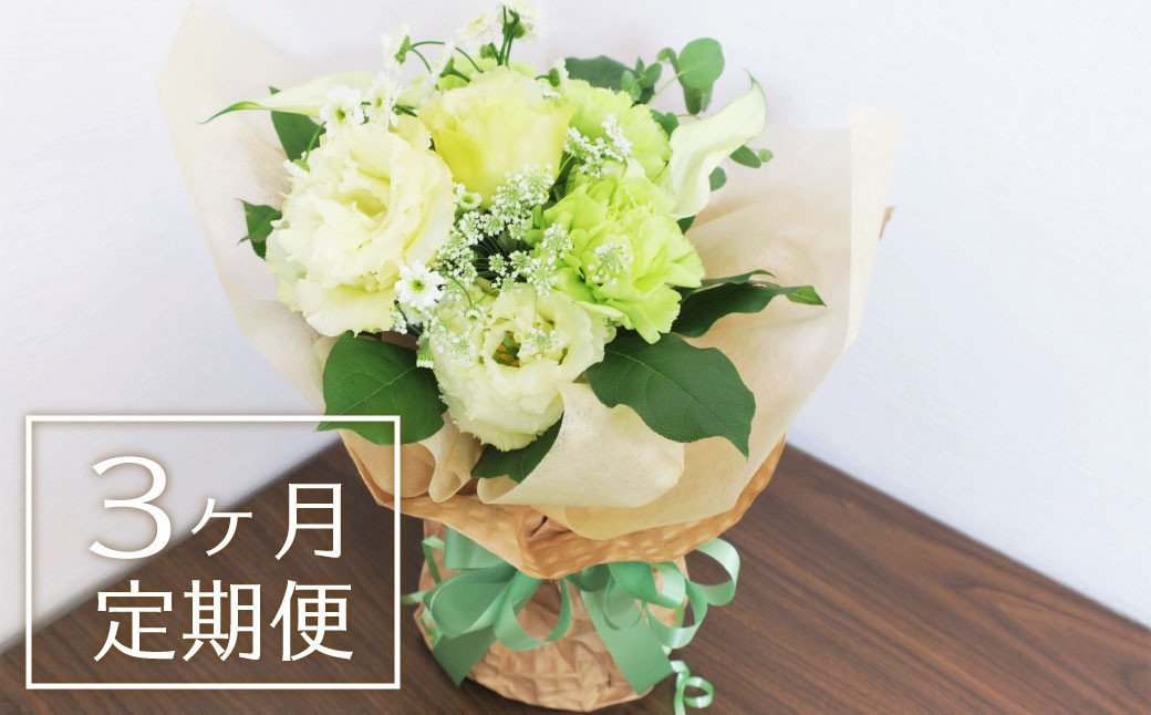 そのまま飾れる花束『スタンディングブーケ』の小(高さ約35cm)を3回、毎月お届けいたします。