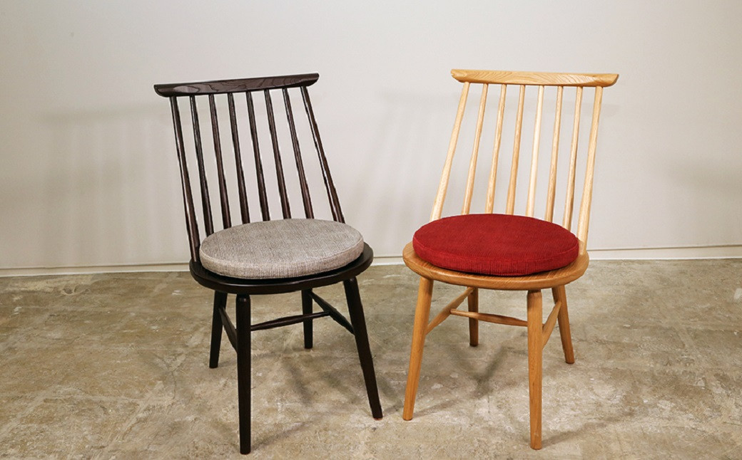 北海道産エルム材を使用したクッション付きのウインザーチェアです。(木座の返礼品もございます。)