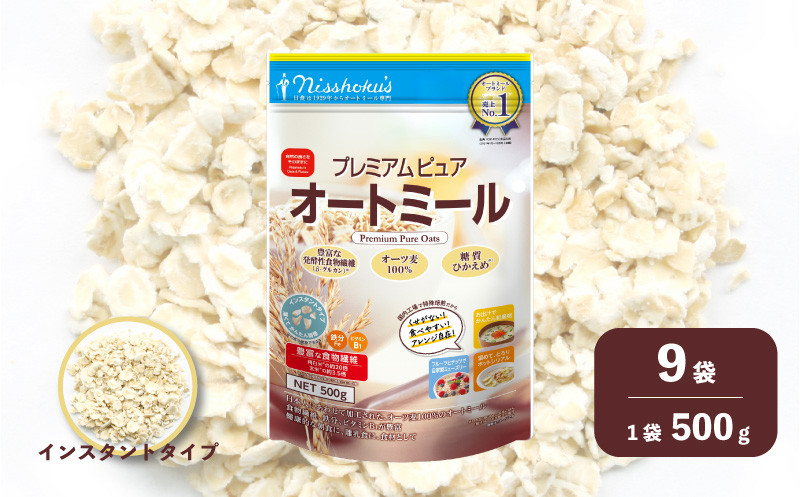 日食 プレミアムピュア オートミール(インスタントタイプ)500g×9袋 E047