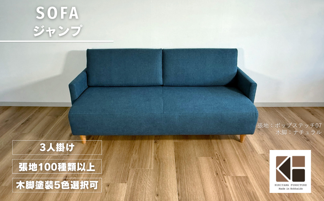 3人掛けソファー【張地100種類以上・木脚塗装色選択可】コンパクトデザイン(ジャンプ) AA85