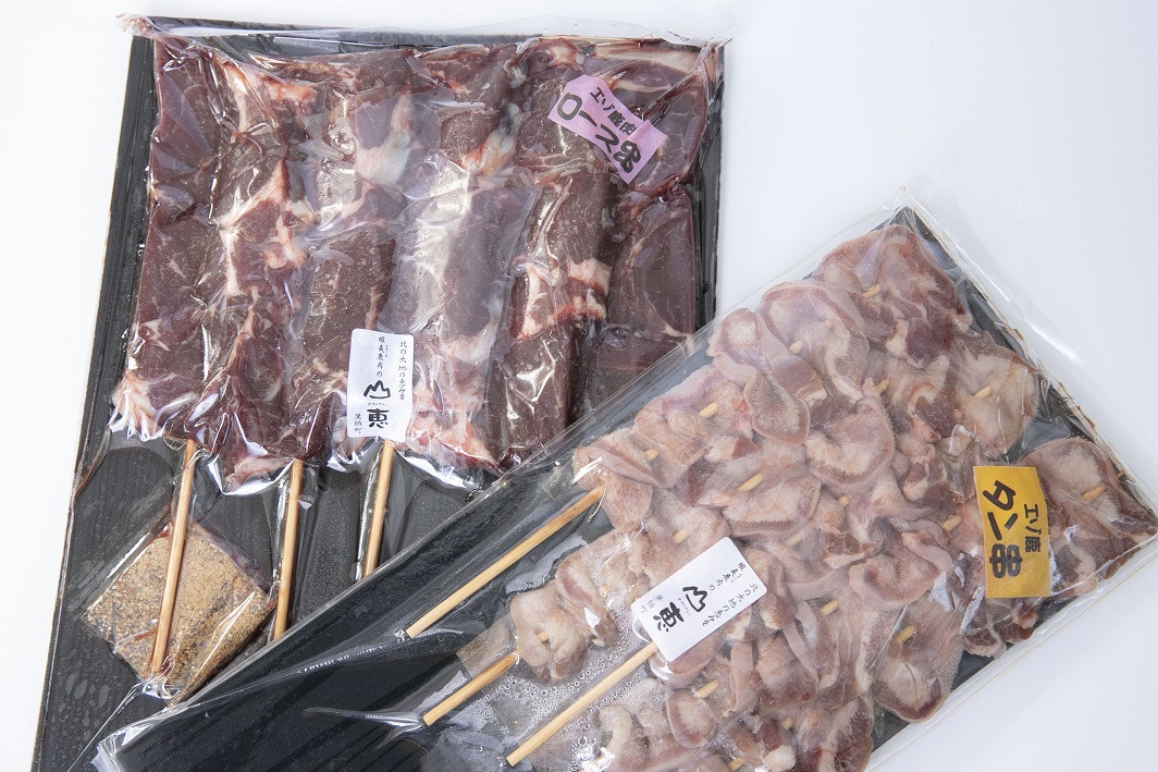 A101エゾシカ 鹿肉 ロース・タン 串物 セット 各5本入り 北海道 鷹栖町 ロース もも肉 使用 高たんぱく 低脂肪 山恵 鹿肉 ジビエ