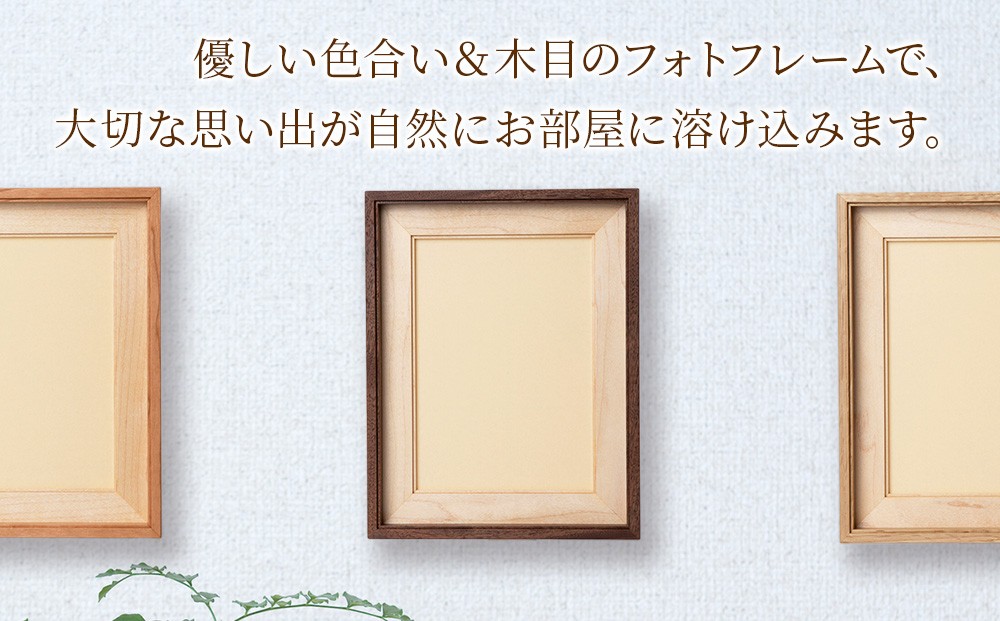 ほっとフレームは「ウォルナット材」・「ナラ材」・「チェリー材」でご用意しており、